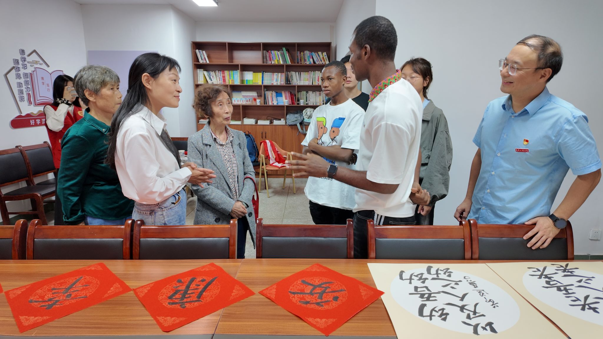 我校国际留学生们和中国学生在学院老师的带领下,前往社区与当地居民一同庆祝重阳节。在活动中,老师详细介绍了重阳节的起源、习俗和意义。留学生们纷纷表示对中国传统文化产生浓厚兴趣,前往社区独居老人家中,与老人热情交流,并送去了爱心礼物。