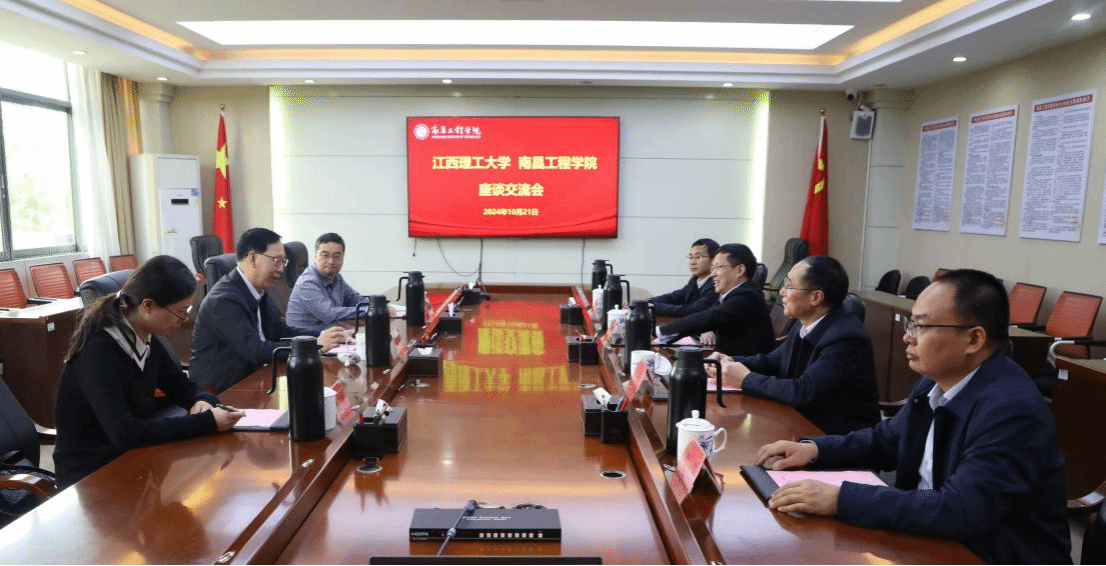 10月21日上午,江西理工大学党委书记杨斌、副校长黄志繁一行来校调研交流。学校在行政楼300会议室召开交流座谈会,校党委书记汪胜前致欢迎词,校长刘祖文主持会议,副校长贺丹君参加相关活动。