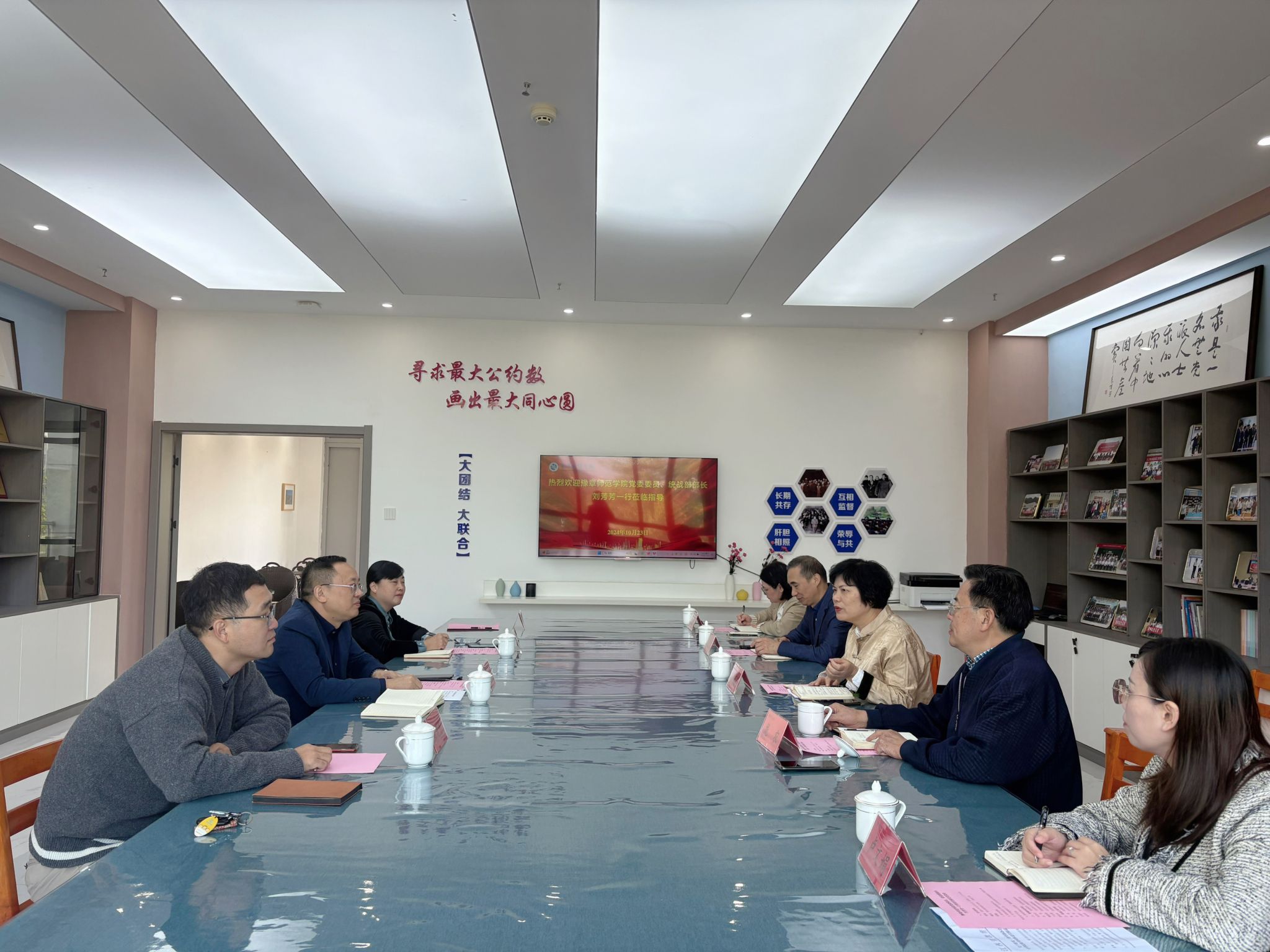 座谈会上,双方共同观看了我校宣传片,相互介绍了本校的事业发展情况及统战工作情况,并围绕民主党派、统战团体、民族宗教、《中华民族共同体概论》课程开课等方面进行了探讨。座谈交流结束后,刘芳芳一行参观了我校水文化馆和蔡超美术馆,对我校的浓厚校园氛围和文化建设表示赞叹。(文/图 张存岩 责任编辑 潘旭 罗婷)