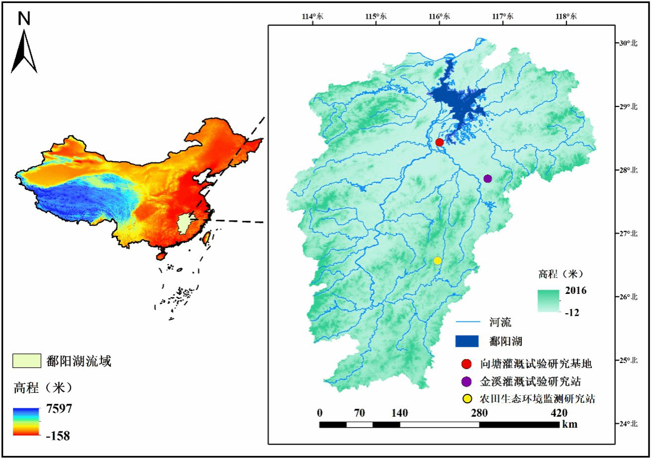 鄱阳湖野外站依托单位为南昌工程学院,共建单位为江西省灌溉试验中心站和江西师范大学,包括向塘、金溪、宁都3个站点,主要开展农田水肥迁移转化规律及作物提质增效的综合调控、汛旱交替条件下作物逆境响应适应机理与农田防灾减灾、农业田-沟-塘灌排系统节水减污与生态修复、南方灌区现代水网构建理论与技术等方面的观测研究,为水资源的高效利用提供理论与技术支撑,对促进鄱阳湖流域以及我国南方地区的粮食与果蔬生产、保障粮食安全意义重大。