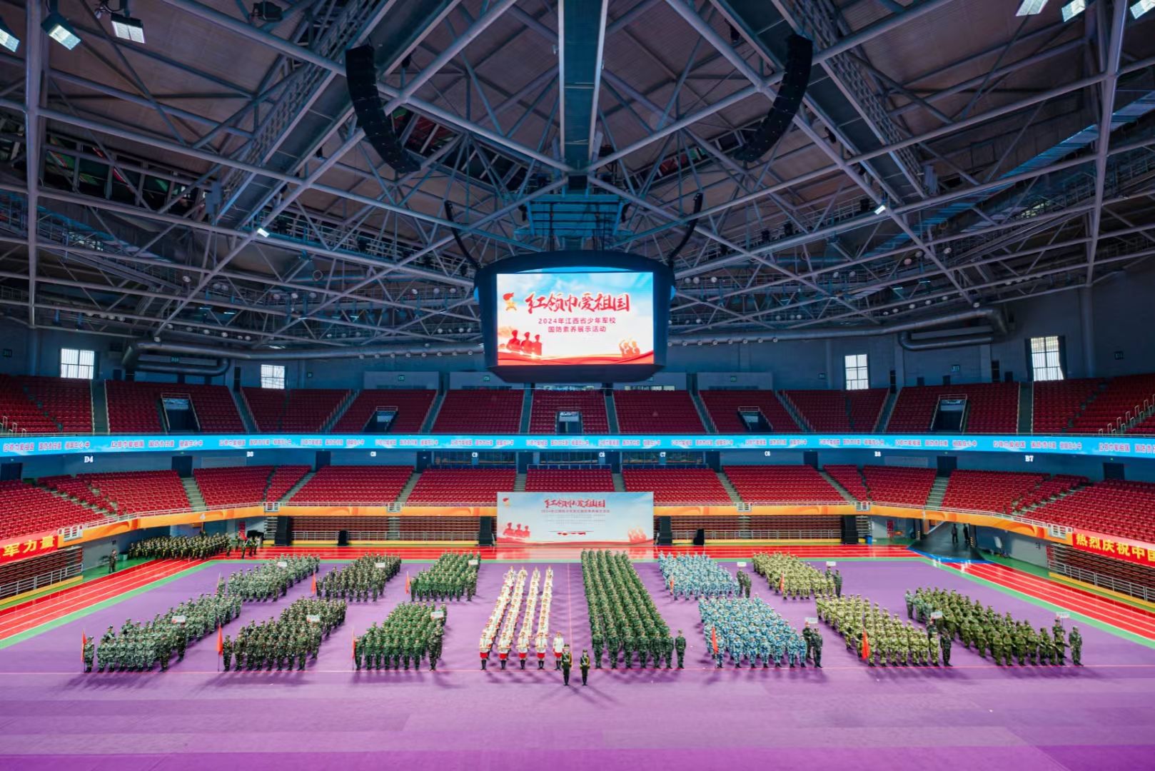 10月27日上午,由省委宣传部、团省委、省教育厅、省少工委、省军区政治工作局等单位举办的“红领巾爱祖国”——2024年江西省少年军校国防素养展示活动在南昌国际体育中心举行。我校选派100名军士生参与军事素养项目表演。本次活动还吸引了全省11个设区市的少年军校代表、少先队工作者共千余人参加。