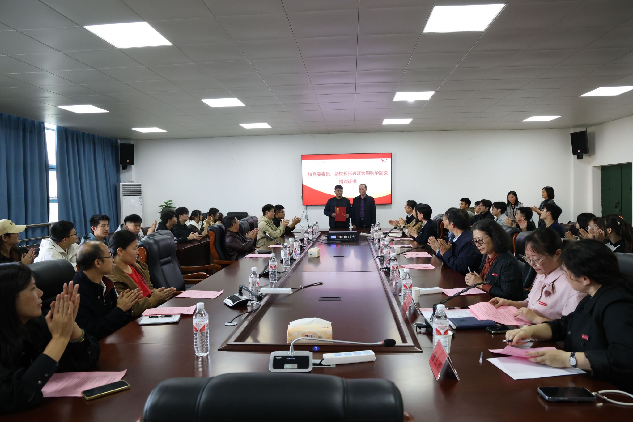 11月2日,电气工程学院建设发展基金捐赠仪式在机械电气楼B303会议室举行。校长刘祖文、校党委副书记吴泽俊、副校长张兴旺,建设发展基金捐赠者、江西华庚企业管理咨询有限公司总经理、1999级供用电技术专业校友周秋华,2002级工程造价专业校友李凌卿出席仪式,校友(基金)会办公室、校工会、电气工程学院相关负责人和师生代表参加活动。