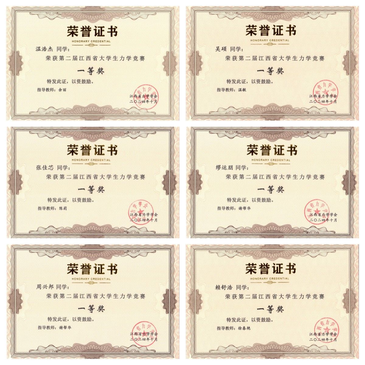 近日,第二届江西省大学生力学竞赛圆满落幕,我校2022级水利水电工程(瑶湖)专业温浩杰等6位同学荣获省级一等奖,2022级土木工程专业高升等16位同学荣获省级二等奖,2022级土木工程专业蔡鹏宇等11位同学荣获省级三等奖,土木与建筑工程学院教师谢帮华、余丽、温敏、陈莉、徐春艳荣获优秀指导教师奖。