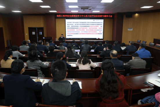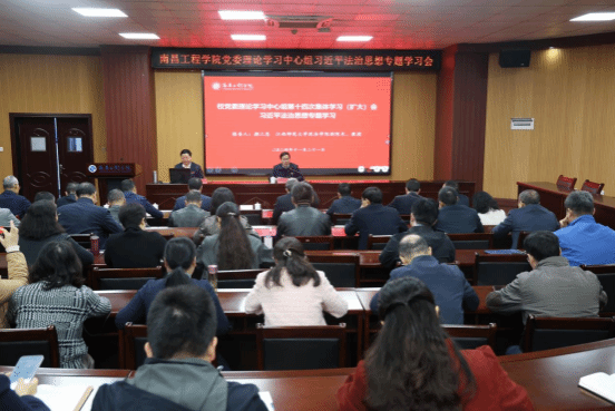 11月21日上午,校党委理论学习中心组召开第十四次集体学习(扩大)会,专题学习习近平法治思想和全省教育大会精神。江西师范大学政法学院副院长颜三忠教授作专题辅导报告。校党委书记汪胜前主持会议并讲话,校党委副书记、校长刘祖文就学习内容作中心发言。学校党政班子成员,各党群、行政部门以及业务单位主要负责人,各二级党委(党总支)书记参加学习。