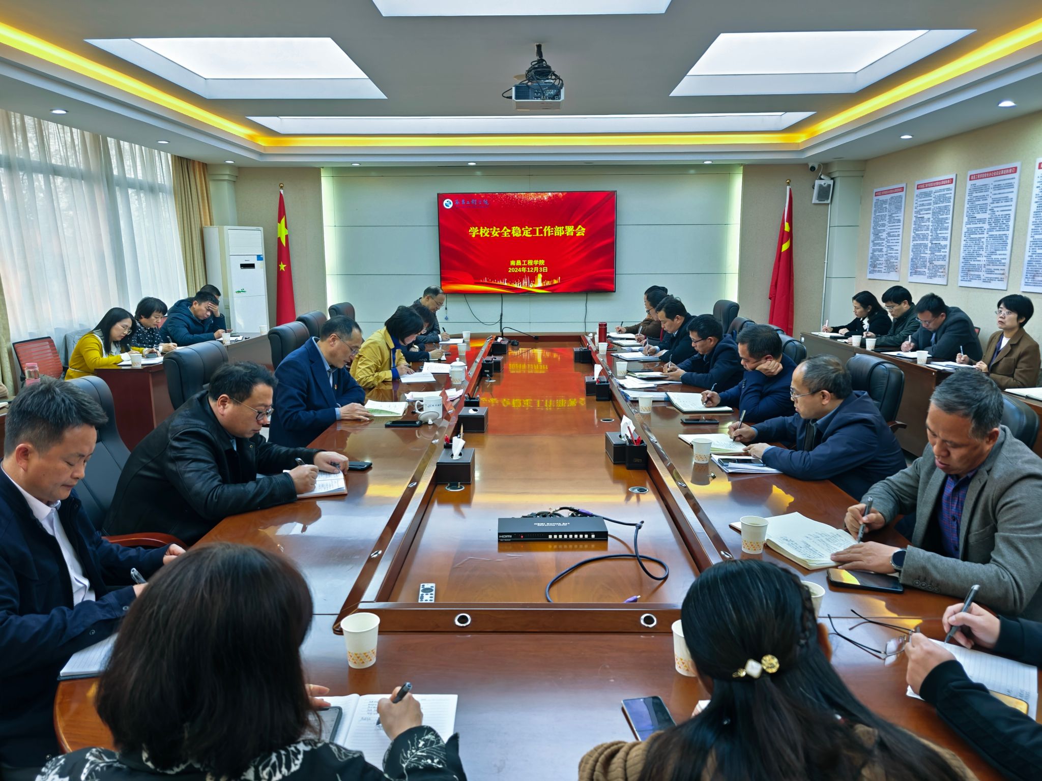 12月3日下午,我校在行政楼300会议室召开安全稳定工作部署会,校长刘祖文出席并讲话,副校长周敏丹主持,相关职能部门和各教学单位主要负责人参加。