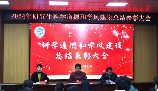 12月20日上午,2024年研究生科学道德和学风建设总结表彰大会在新时代文明实践中心(大学生活动中心)B100会议室召开。副校长李培生出席大会并讲话,研究生院、研究生培养学院负责人及研究生培养秘书、导师代表、各班级研究生代表参加。