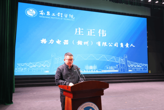 格力电器(赣州)有限公司负责人庄正伟介绍了赣州格力电器的总体情况、人才需求和发展愿景。我校南康籍学生代表、2021级能源与动力工程专业奚一方介绍了自己在校学习与生活情况。