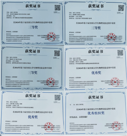 近日,2024年第十届全国大学生物理实验竞赛(创新)圆满结束,我校代表队共获三等奖3项,优胜奖2项,学校荣获“优秀组织奖”。