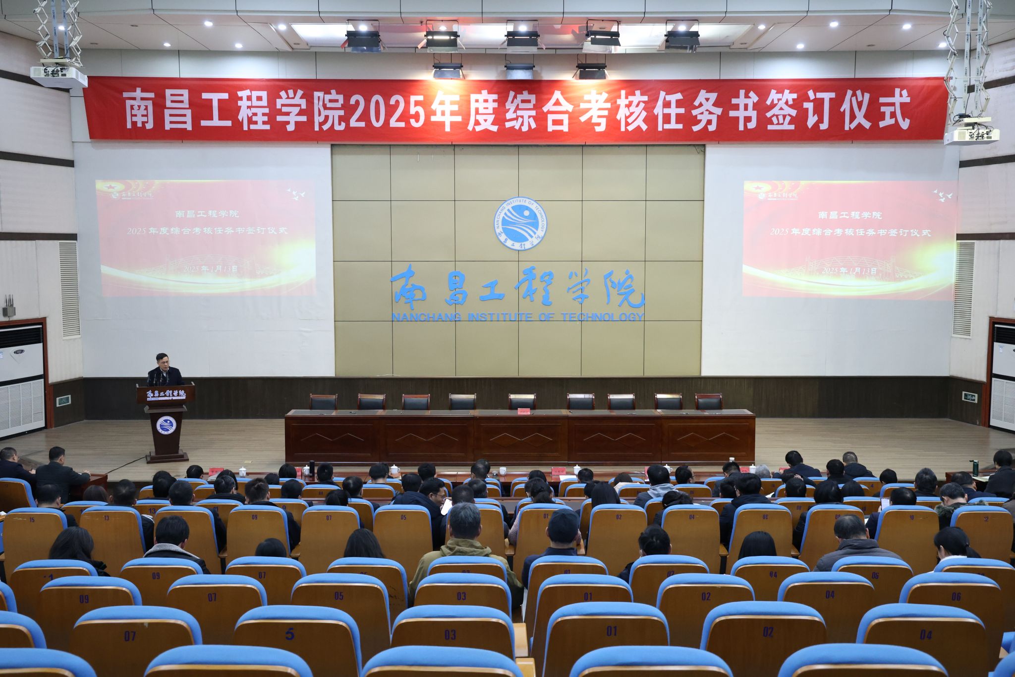 1月13日下午,学校在大禹学术报告厅举行二级单位(部门)2025年度综合考核任务书签订仪式。校党委书记汪胜前出席并讲话,校长刘祖文与各二级单位(部门)签订2025年度综合考核任务书并讲话,校党委副书记吴泽俊主持,在家校领导和副处级以上干部参加。