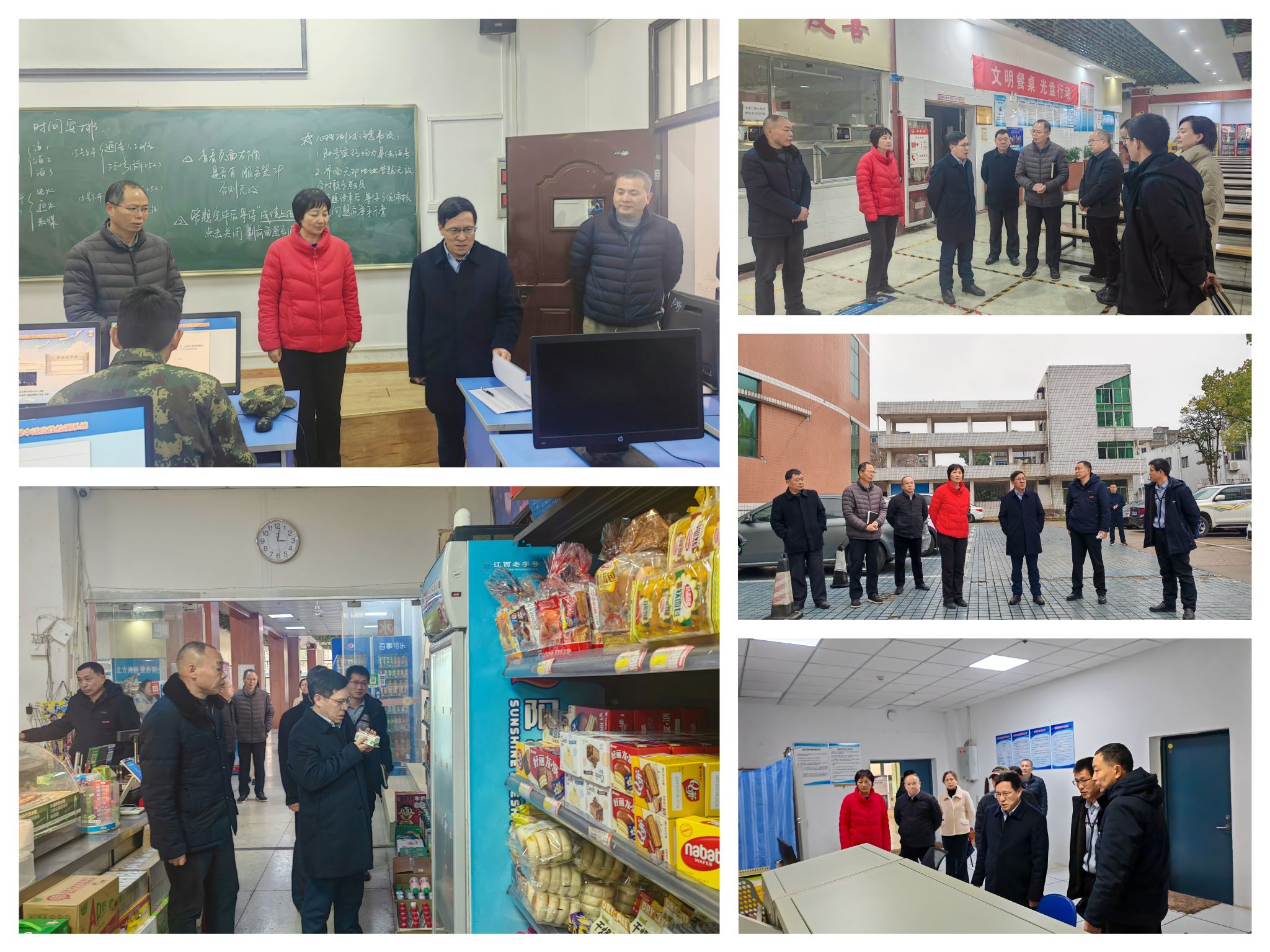 近日,校党委书记汪胜前、校长刘祖文带队开展春季开学前校园安全检查,现场调度开学准备情况,有效整治各类安全稳定隐患,切实保障春季开学初师生安全和校园稳定。学生工作处、后勤保障处、保卫处、基本建设处、大学科技园服务中心、校医院、军士学院等单位相关负责同志陪同检查。本次联合检查覆盖两个校区,内容全面,重点突出,涵盖了春季开学各项准备工作开展情况、门岗管理及周边围墙防护情况、食品卫生安全及传染病防控等多个方面。