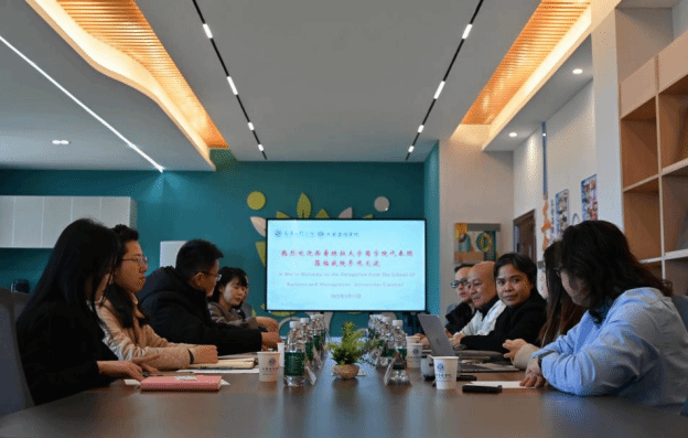 工商管理学院及国际交流与合作处相关负责人出席会谈,双方就各自办学情况进行了交流,并深度探讨未来在教学、科研、人才培养等方面合作的可能性。