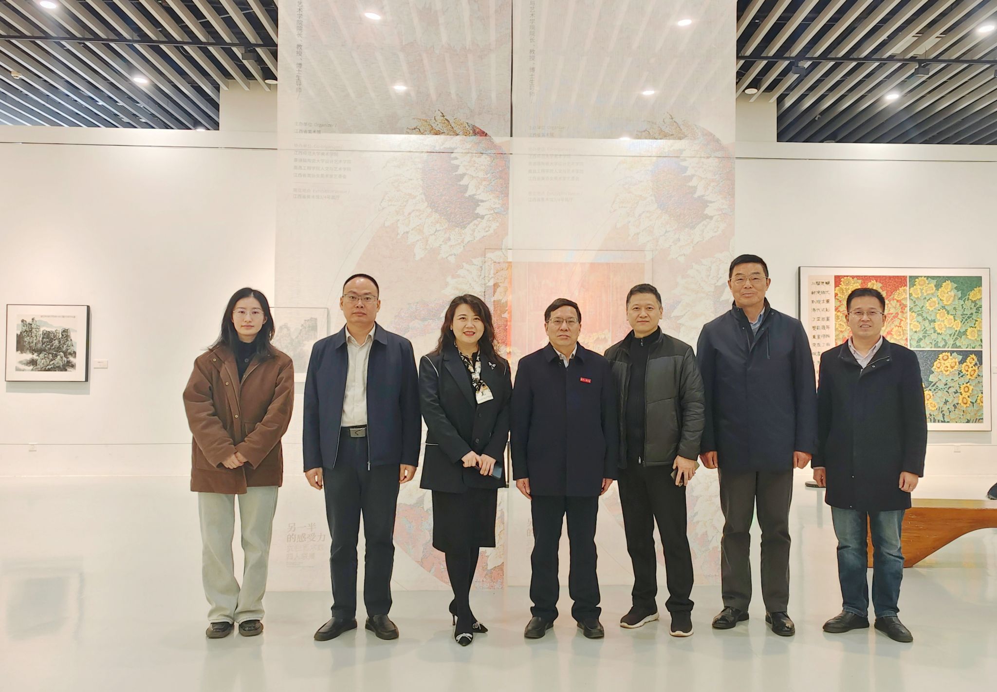 近日,我校人文与艺术学院院长万芬芬教授“另一半的感受力——女性艺术家四人联展”在江西省美术馆开展。本次展览由江西省美术馆主办,我校协办。校党委书记汪胜前,校长刘祖文,校党委副书记吴泽俊,校纪委书记殷安全,副校长陆伟锋,校党委委员、党委宣传部部长洪恩强观展,江西省美术馆副馆长李启龙陪同。