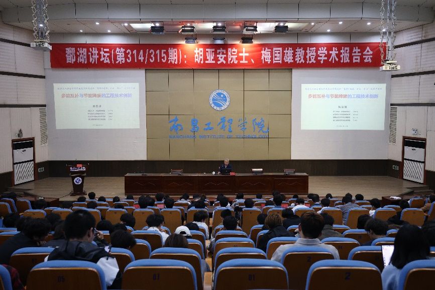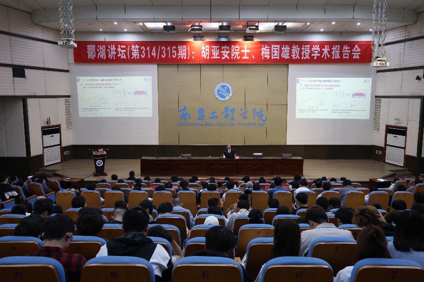 3月23日下午,中国工程院院士、南京水利科学研究院总工程师胡亚安和浙江大学求是特聘教授梅国雄做客我校第314、315期“鄱湖学术讲坛”,在大禹学术报告厅为广大师生分别作了题为“高坝通航水力学创新与挑战”与“多能互补与节能减碳的技术创新”的学术报告。校长刘祖文、校党委委员王小军出席并分别主持,科技处以及土木与建筑工程学院、水利工程学院主要负责人和师生代表300余人参加。