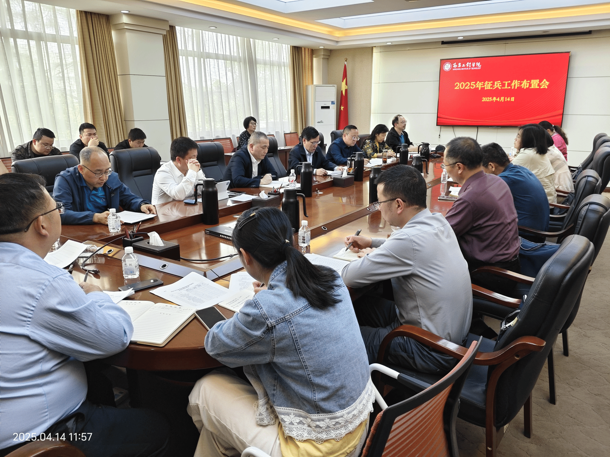 4月14日,我校2025年征兵工作布置会在行政楼300会议室召开。校党委书记汪胜前出席并讲话。校党委委员、党委统战部部长熊涛主持。校征兵工作领导小组成员,各学院征兵工作负责人及联络员参加。