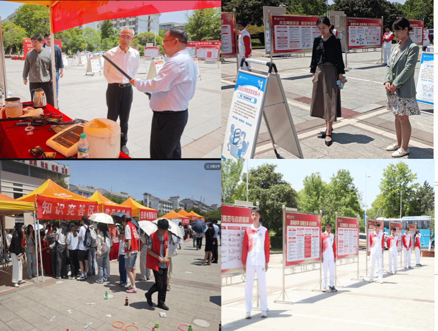 今年是第十个全民国家安全教育日,主题是“全民国家安全教育 走深走实十周年”。学校高度重视本次活动,现场设有海报宣传区、绘画书法展示区、现场咨询区、安全知识竞答区等四个展区,集中展示国家安全、消防安全、交通安全、反邪教、反恐、禁毒、防诈骗、防溺水、心理健康教育等内容,高新公安分局禁毒大队警员、光伏产业园派出所民警,校保卫处、学生工作部(处)、团委、人文艺术学院、水土保持学院等工作人员通过播放音像制品,现场接受咨询、讲解相关知识等形式,向师生宣传安全知识和防范技能。仿真毒品展示让师生了解了毒品知识,安全知识竞答有奖互动小游戏把师生热情推向高潮,师生纷纷在集中签名墙上签名、打卡合影,现场氛围热烈。