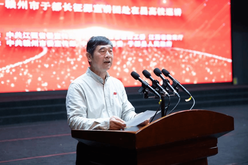 4月18日上午,赣州市于都长征源宣讲团在我校瑶湖艺术中心开展“永远的长征”主题巡讲活动,深入贯彻落实习近平总书记关于传承红色基因的重要指示精神,讲好长征故事,传承红色基因。校党委副书记吴泽俊出席并致辞,相关职能部门负责同志、各学院党员、辅导员、思政课教师代表,校院两级大学生骨干培训班、团学干部学习习近平新时代中国特色社会主义思想宣讲团成员等1100余人现场聆听宣讲,现场气氛热烈,反响强烈。