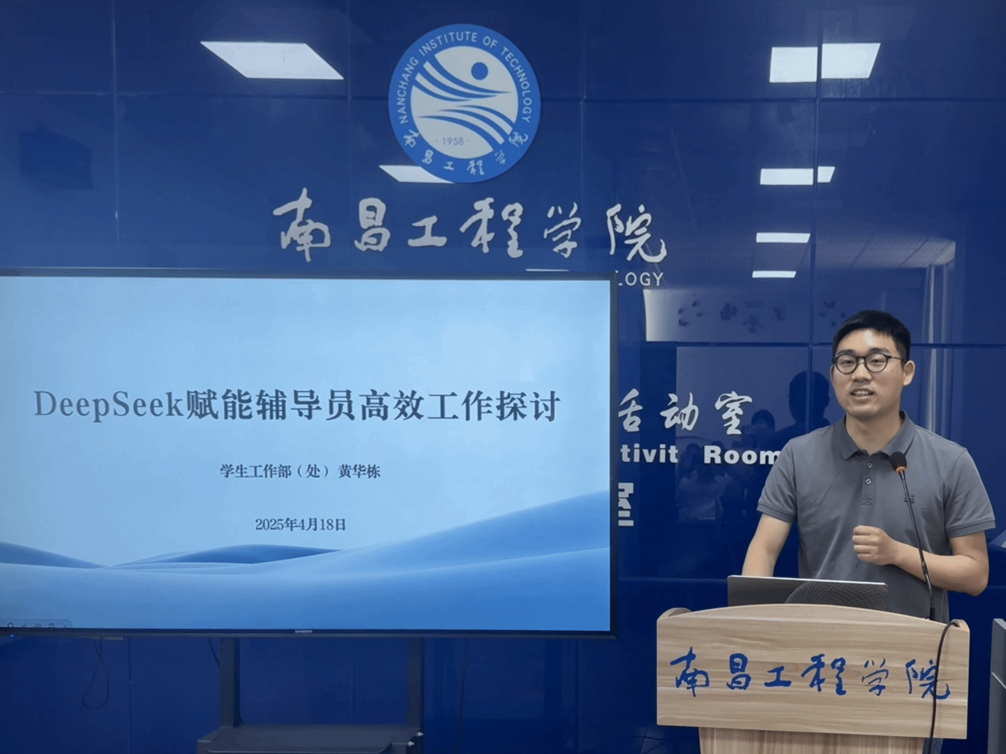 学生工作部(处)专职辅导员黄华栋聚焦“生成式AI赋能学生工作”,以“DeepSeek是什么?能为辅导员工作带来哪些赋能?如何高效运用这类工具?”三个核心问题为切入点,通过理论阐释与实操演示相结合的方式,分享AI技术在数据整理、文案创作等场景中的创新应用。分享过程中,参会人员围绕AI工具使用技巧、风险防控等问题展开研讨,现场互动氛围浓厚。