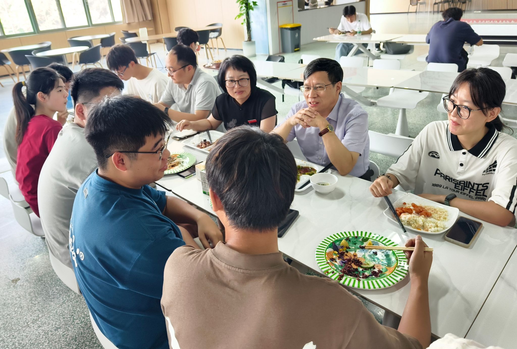 用餐期间,气氛融洽、轻松欢快,汪胜前与同学们亲切交谈,认真倾听大家对饭菜口味、价格和服务质量方面的意见以及对学校发展的建议,详细询问大家在校期间的学习、生活情况以及对未来的职业规划,耐心解答大家关切的问题,并勉励同学们要珍惜在校时光,扎实学好专业知识,在“人工智能+”时代背景下,努力将自己所学专业与人工智能运用相结合,以更好应对高科技挑战、适应社会需求,同时要加强体育锻炼,保持身心健康。