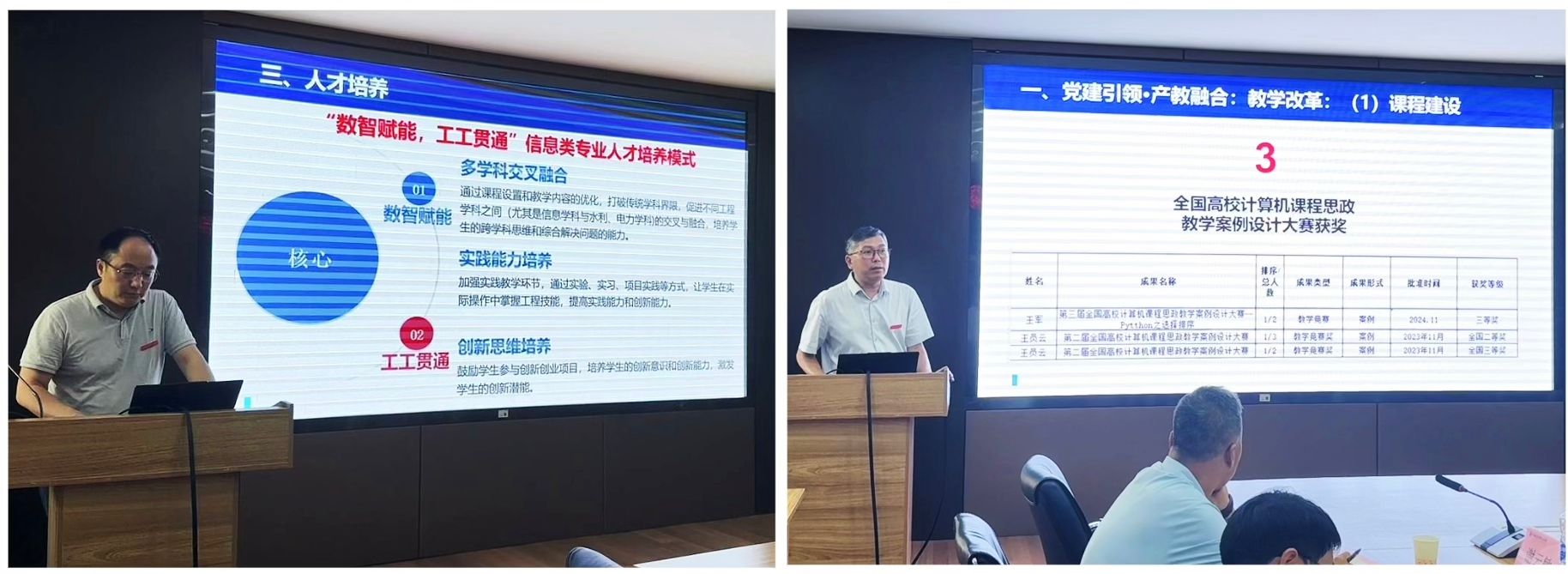调研会上,汪胜前肯定了信息工程学院近年来工作成效,指出当前学院还存在的不足弱项,强调学院要把握新发展要求,布局未来教育新形态,主动服务国家科技自立自强战略;要深化改革创新,激发体制机制新活力,引领专业结构优化重组、高层次人才的精准引进以及实验教学资源的精准配置等;要聚焦赋能增效,打造融合发展新范式,将人工智能技术深度融入水利、电力等优势学科,加快推进学科优化升级,全面提升办学质量和水平,助力解决行业重大科学与技术难题。
