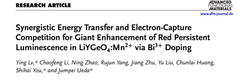 近日,我校青年教师吕营博士联合厦门大学等单位在稀土长余辉发光材料研究方面取得重要进展。该成果以“Synergistic Energy Transfer and Electron‐Capture Competition for Giant Enhancement of Red Persistent Luminescence in LiYGeO4:Mn2+ via Bi3+ Doping”为题,发表于国际期刊《先进功能材料》(Advanced Functional Materials,2024年影响因子为19)。