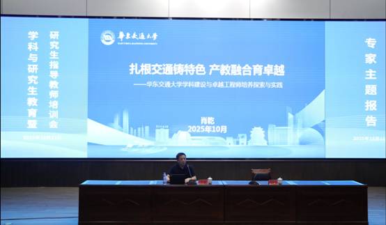 华东交通大学副校长肖乾教授作题为“学科建设与卓越工程师培养模式探索”的专题报告。他结合华东交通大学在轨道交通领域的特色优势,阐述了学科建设与卓越工程师培养的协同机制,分享了通过产教融合、科教融汇提升人才培养质量的有效路径,为我校优化学科布局和创新人才培养模式提供了宝贵借鉴。
