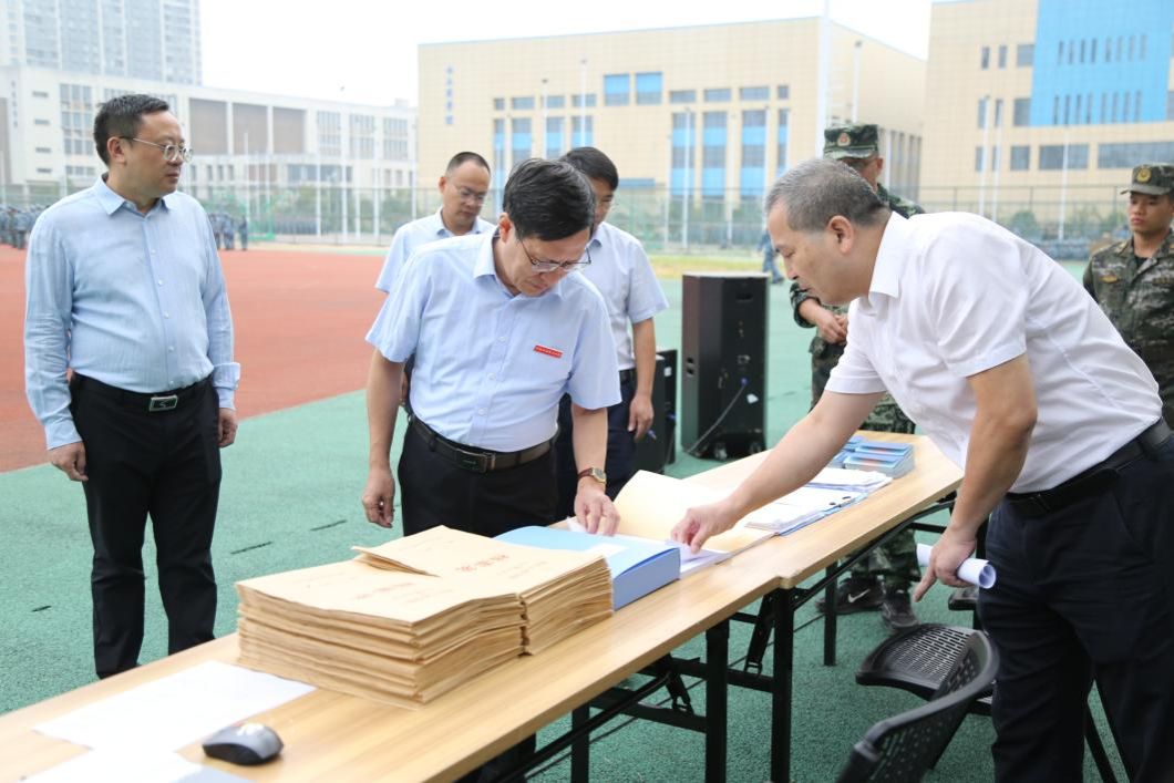 视察期间,汪胜前认真听取军训进展情况汇报,查阅相关训练资料,实地察看各营训练实况,先后观摩了战术基础演练、应急棍术、队列训练及战伤救护等科目。
