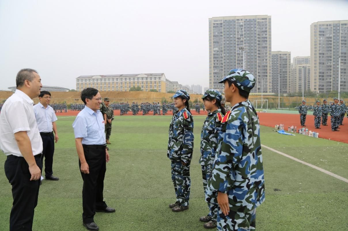 走访中,汪胜前与参训新生亲切交流,关切询问大家的训练感受和衣食住行情况,“军训强度还适应吗?”“老家是哪里的?在这里生活习惯吗?”温暖的话语传递出学校对新生的深切关怀。他对同学们展现出的饱满精神和昂扬斗志表示赞许,对教官们的专业素养与辛勤付出给予肯定,叮嘱相关部门全力做好科学训练安排、后勤服务保障及安全防护工作,确保军训任务圆满完成。