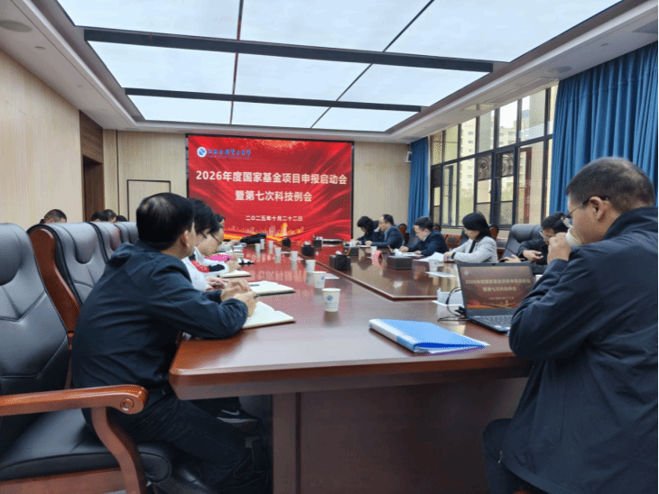 10月22日,学校召开2026年度国家基金项目申报启动会暨第七次科技例会。校党委书记汪胜前出席并讲话,学术副校长王媛主持,科学技术处、各学院行政负责人及科技工作分管领导、各科研平台专职副主任参加。