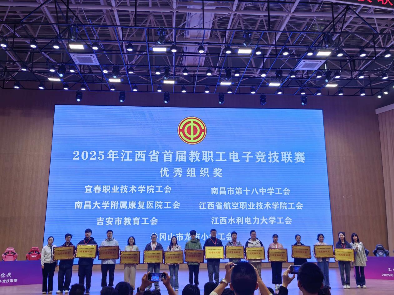 10月25日至26日,由江西省教育工会主办的“2025年江西省首届教职工电子竞技联赛”总决赛在江西软件职业技术大学学术交流中心圆满落幕。我校教职工代表队凭借出色的团队协作与战术发挥斩获联赛季军,学校被组委会授予“优秀组织奖”。