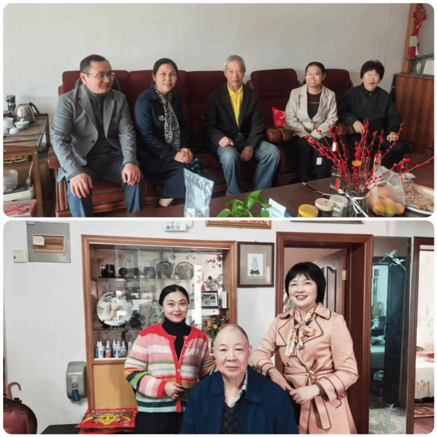 在老社员肖高明及袁志戎家中,慰问组关切地询问他们的身体健康状况和日常生活情况,并送上精心准备的节日慰问品,向老同志们介绍了基层委员会的发展情况,并向他们致以节日诚挚问候和美好祝福,感谢他们长期以来为学校事业发展和九三学社组织建设所作出的卓越贡献。