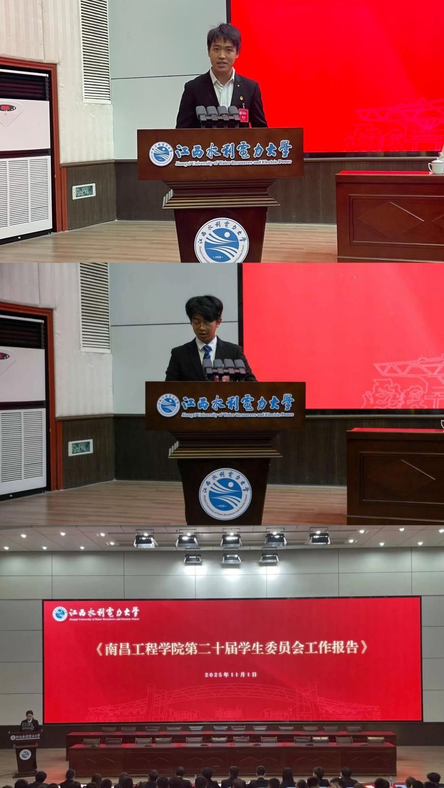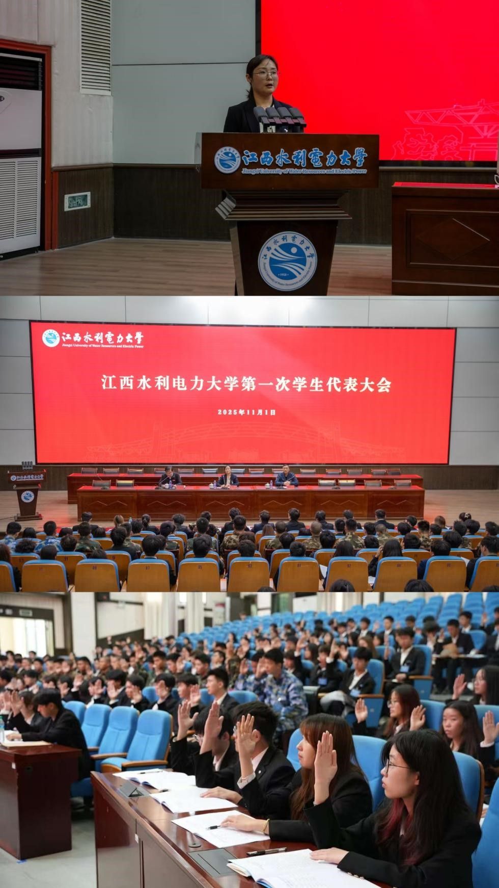 11月1日,江西水利电力大学第一次学生代表大会在大禹学术报告厅召开。校党委书记汪胜前,江西省学生联合会驻会执行主席李沛昱,副校长周仲魁,校党委委员、党委组织部部长阳子龙,校党委委员、党委宣传部部长洪恩强出席,党委组织部、党委宣传部、党委学生工作部、党委教师工作部、保卫部、团委、教务处等职能部门负责人、各学院团委负责同志、兄弟高校代表及全校193名学生代表参会。