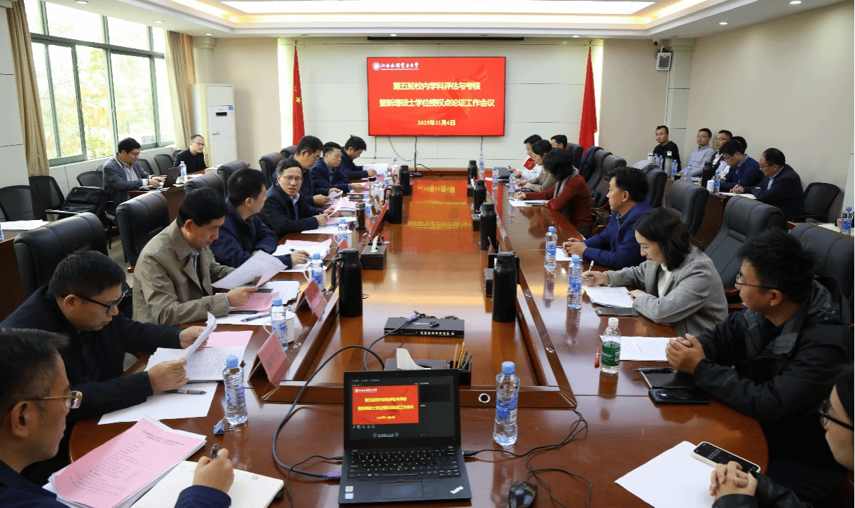 11月6日,第五轮校内学科评估与考核暨新增硕士学位授权点论证工作会议在行政楼300会议室召开。校党委书记汪胜前出席并讲话,副校长李培生主持会议。校外评审专家、研究生院、一流学科建设学院院长及学科负责人参加。