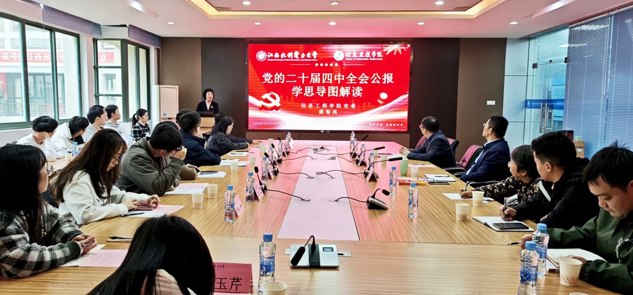 与会人员观看了视频《学习贯彻党的二十届四中全会精神 接续奋斗 奋力开创中国式现代化建设新局面》。学院党委负责人讲授了《党的二十届四中全会公报学思导图解读》的微党课,并号召与会党员同志们以此次结对共建为契机,加强交流与合作,推动党建与业务深度融合,以高质量党建引领事业高质量发展。