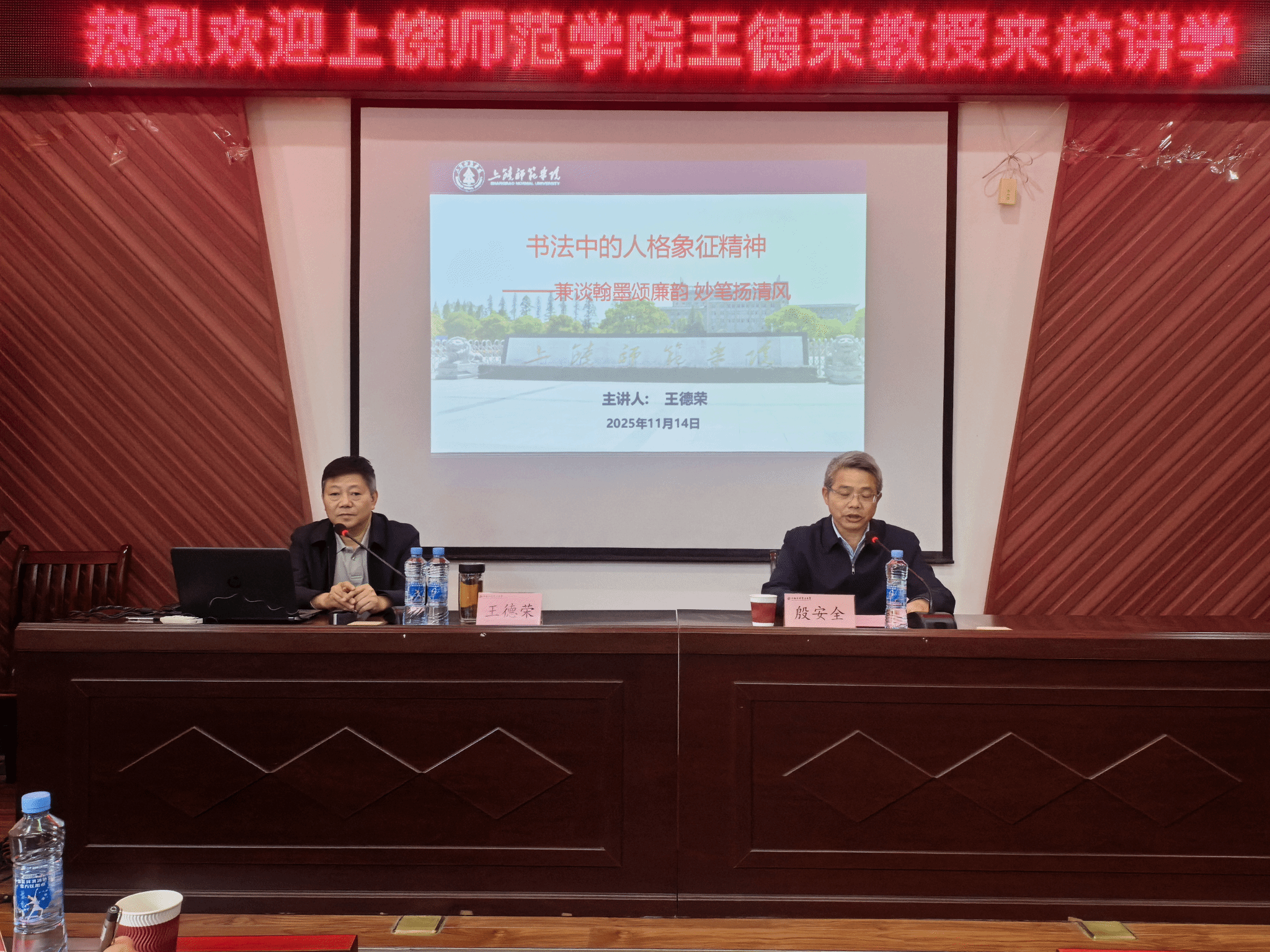 11月14日,我校第338期“鄱湖学术讲坛”在艺术楼A230举办。本次讲座主题为“书法中的人格象征精神——兼谈翰墨颂廉韵 妙笔扬清风”,上饶师范学院原纪委书记王德荣教授担任主讲。副校长李培生,校纪委书记殷安全,人文与艺术学院主要负责人及师生代表100余人参加。