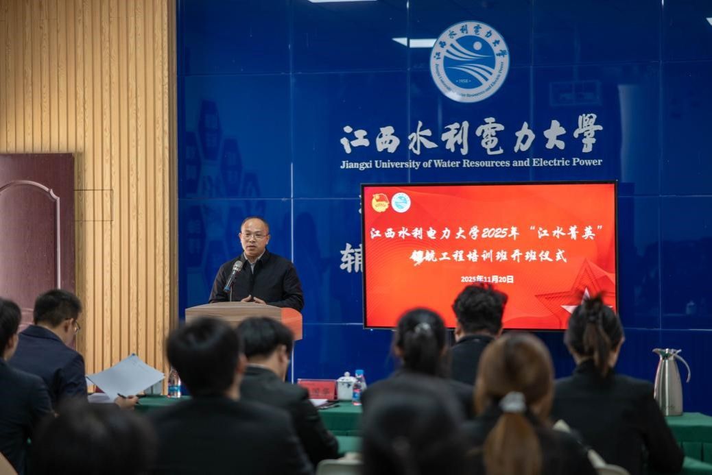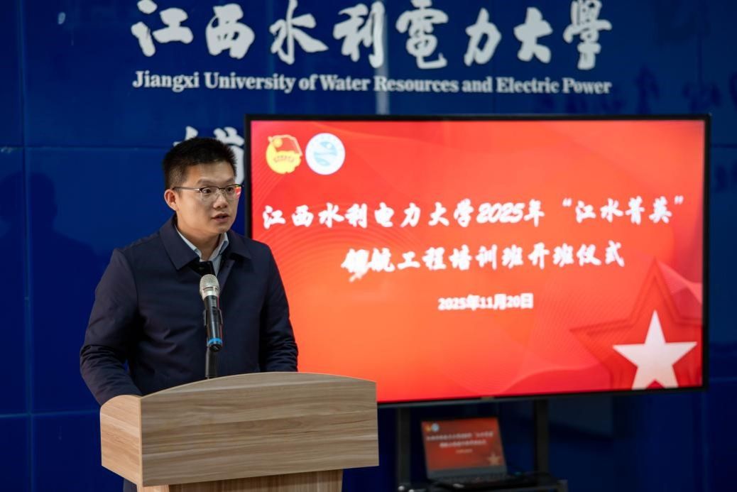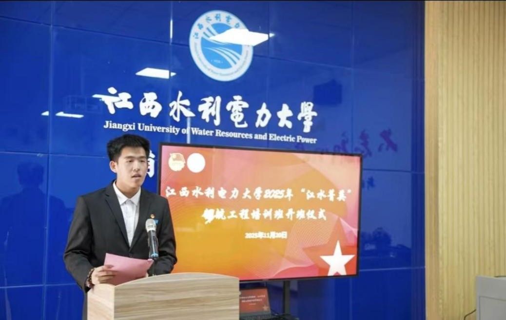 活动现场,党委学生工作部负责同志对入选学员表示祝贺与期许,指出“江水菁英”领航工程是学校锻造高素质学生骨干队伍的重要举措,是推动校园建设、服务同学成长的核心力量,并围绕“守初心、强能力、耐挫力、有担当”四维度提出要求。校团委负责同志宣读《关于成立江西水利电力大学2025年“江水菁英”领航工程培训班和团支部的决定》,为培训班规范化建设提供明确遵循。培训班团支书兼班长结合学习经历,分享了对学生干部工作的思考与规划。