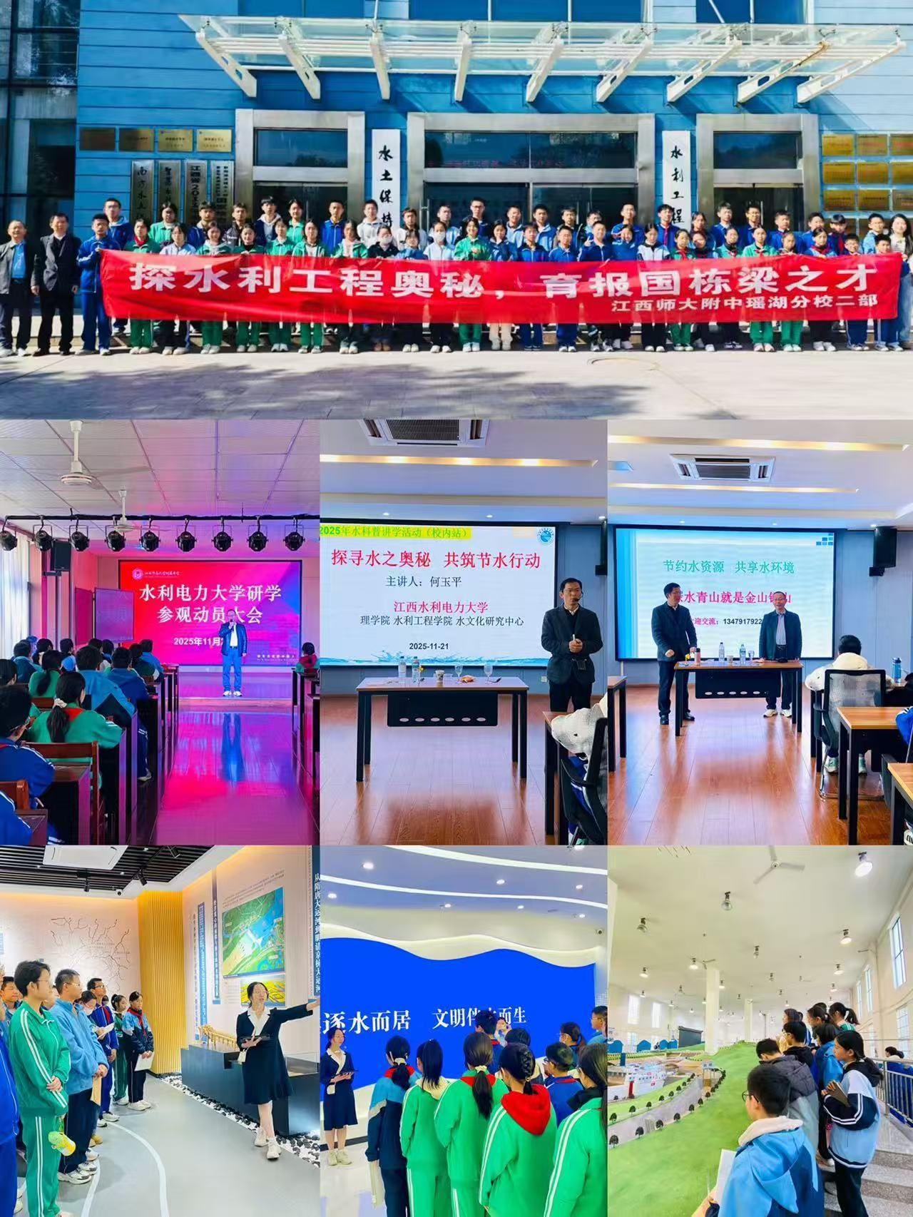 11月21日,江西师大附中瑶湖分校二部近六十名师生代表来我校瑶湾水利风景区参观研学。同学们通过听取科普讲座、参观水文化馆、水利科普馆和校园水利风景,开展“探索水利工程奥秘,养育报国栋梁之才”主题的研学活动。