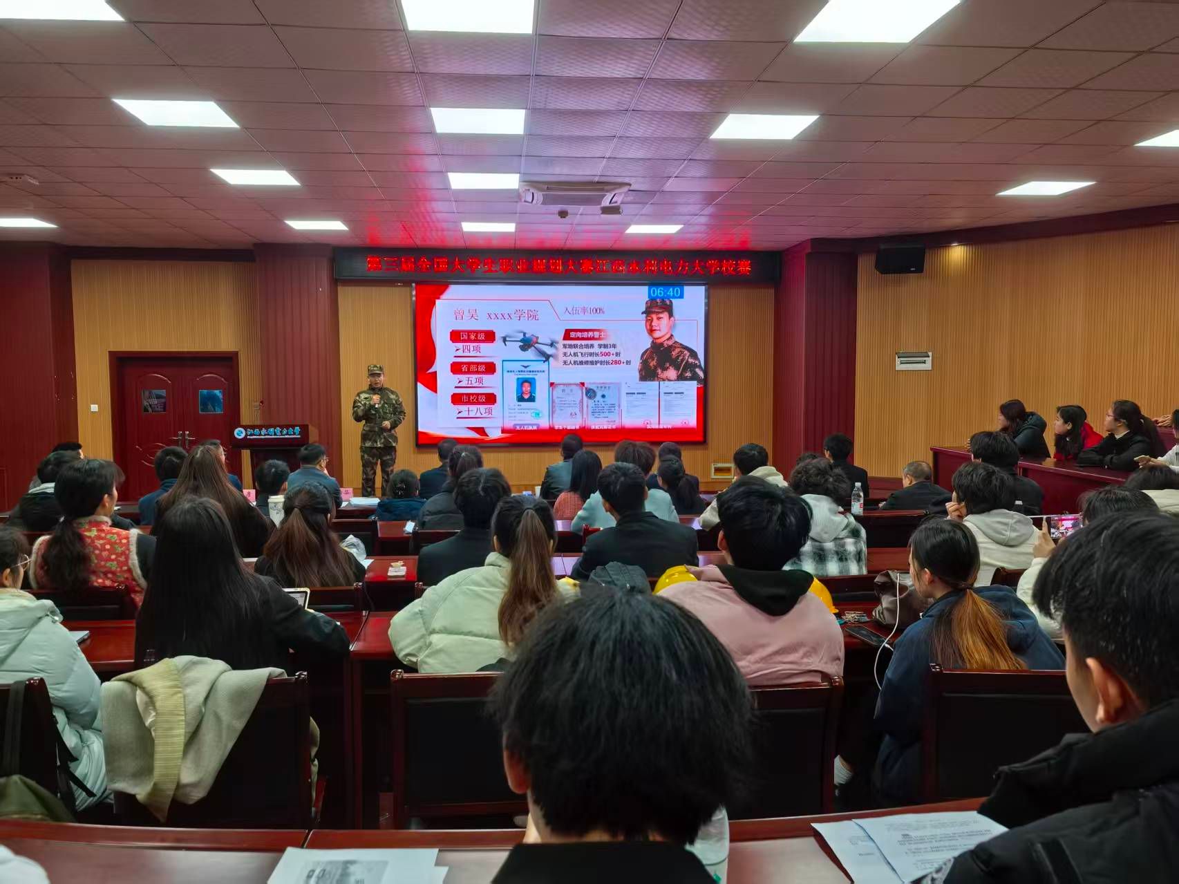 大赛特别设置优秀项目展示环节,第二届全国大学生职业规划大赛获奖项目进行现场呈现。校赛延续“成长赛道”与“就业赛道”双轨并行模式。成长赛道选手聚焦长远职业发展蓝图,围绕职业目标、学习实践行动及优化改进展开陈述;就业赛道选手则立足具体求职意向,结合专业技能储备、实习实践经历等内容,展示岗位胜任力与发展潜力。比赛现场,选手们以清晰的逻辑架构、详实的数据支撑和生动的案例分享,充分展现了我校学子将个人职业理想与行业发展、国家战略需求相结合的责任担当。