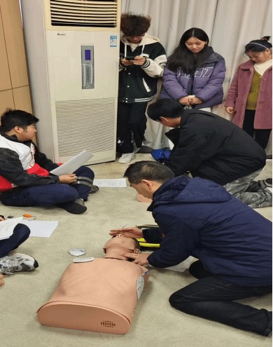 本次培训内容紧扣校园生活实际,聚焦常见突发事件应急处置与救护,开展心肺复苏等急救技能培训。专家通过生动讲解,系统传授了心肺复苏术(CPR)的操作流程与注意事项、自动体外除颤器(AED)的使用方法、创伤出血的压迫包扎技巧以及气道异物梗阻的急救手法(海姆立克急救法)等关键技能。在实践操作环节,专家进行了标准演示。参训人员在专家的指导下,分组利用模拟教具进行了心肺复苏和创伤包扎的实操练习。现场学习氛围热烈,大家踊跃尝试、积极提问,专家与校医院工作人员逐一给予细致指导,确保操作规范准确。