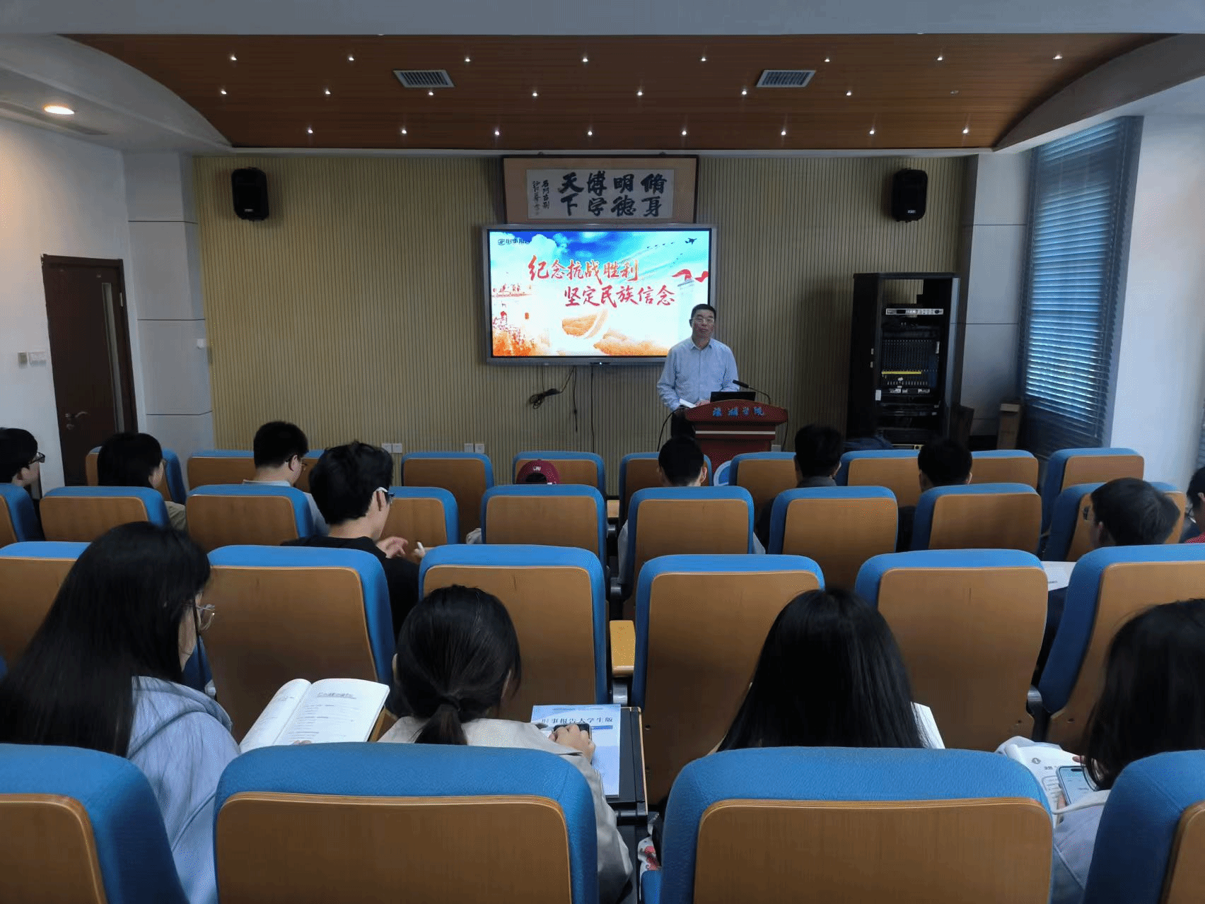校纪委书记殷安全以“纪念抗战胜利 坚定民族信念”为主题,为23级音乐学、编辑出版学、数字媒体艺术等专业的同学们讲授形势与政策课。殷安全从铭记历史、民族壮举、精神丰碑、开创未来等维度,带领同学们重温波澜壮阔的抗战历史,深入解读世界反法西斯战争的重要意义,阐释伟大抗战精神的丰富内涵,引导青年学子从历史中汲取奋进力量,深刻感悟新时代青年的使命担当。