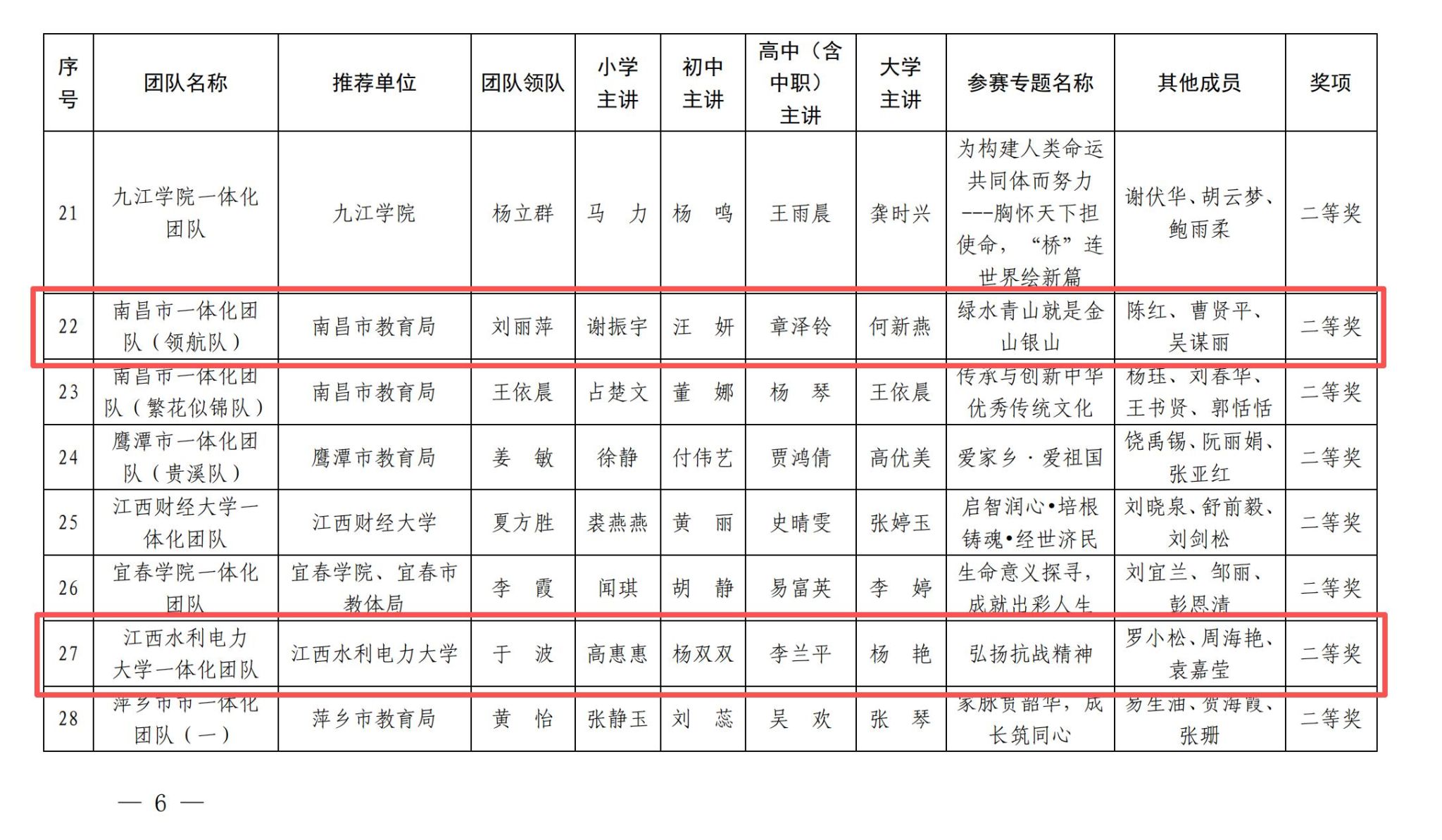 近日,江西省首届大中小学思政课(红色文化)一体化教学展示活动结果公布。我校两支参赛团队在比赛中表现优异,均荣获全省二等奖。