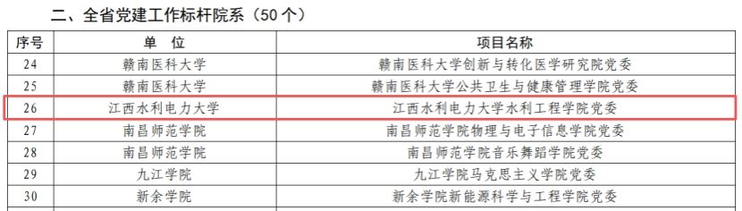 近日,省委组织部、省委教育工委公布了全省第二批新时代高校党建示范创建和质量创优评审结果,我校水利工程学院党委成功入选“全省党建工作标杆院系”培育创建单位。