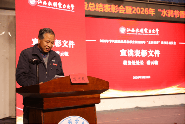3月26日下午,我校2025年学风建设总结表彰会暨2026年“水润书香”读书月动员会在新时代文明实践中心(大学生活动中心)多功能厅召开。副校长周仲魁出席,教务处、学生工作部(处)、校团委主要负责同志,各学院党委书记、副书记、教学副院长、全体辅导员、班主任及学生代表等200余人参加。