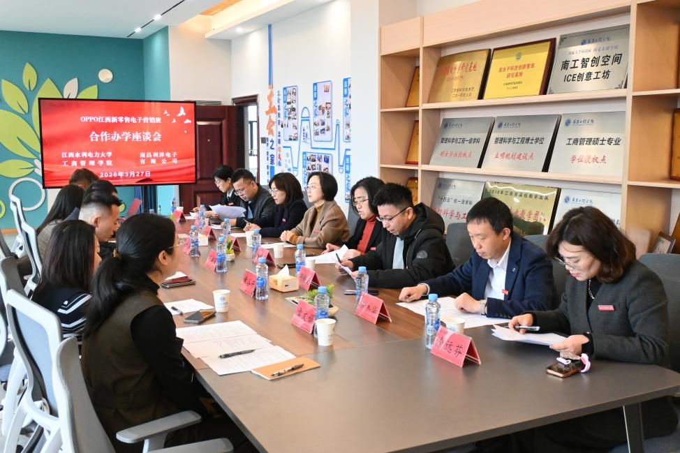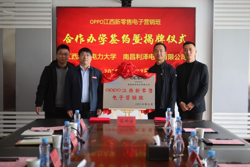 3月27日,我校与南昌利泽电子有限公司校企合作办学签约暨“OPPO江西新零售电子营销班”揭牌仪式,在行政楼336会议室顺利举行。副校长周仲魁,OPPO中国区人力资源部部长叶梁,OPPO中国区零售中心资深HRBP黄谷子,南昌利泽电子有限公司总经理胡建强、零售总经理刘雅兰、人力资源经理章文娟、体验店经理陈杰出席仪式。我校教务处、工商管理学院相关负责人及市场营销教研室教师代表参加活动。