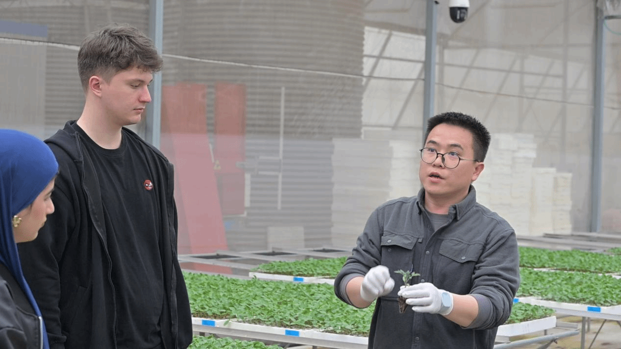 在乐平市乐以科农业开发有限公司,公司负责人向大家讲解了全自动播种机的工作模式、无土栽培草莓和先进水肥一体化设施的优势,并邀请大家品尝采用无土栽培技术培育的新鲜草莓,解读乐平优美自然生态环境和区位地理优势,加深留学生对乐平“江南菜乡”的理解。江西水利电力大学尼日利亚籍留学生雅顺表示:“我在这里了解到草莓、西瓜等水果的现代化种植方式。过去我一直以为草莓生长在土地里,这里的种植模式十分特别。我品尝了这里的草莓,味道非常好,我很喜欢。我也向工作人员提出了一些问题,他们都耐心细致地为我解答。”