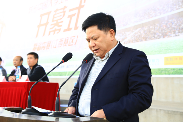 中国大学生体育协会专职副主席薛彦青、我校副校长汪胜前、省足协主席张天元和特步(中国)有限公司高级经理朱晨光为比赛开球。揭幕战上,南昌大学以2:0战胜了江西师范大学。