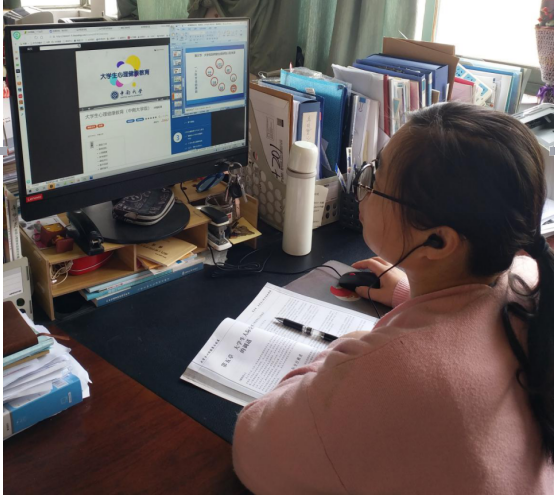作为心理教师,第一次在网上开展教学的宋园园既感觉陌生,也倍感挑战。她夜以继日地准备,查阅了大量有关心理危机干预的资料,参加了相关网络教学培训,为上好心理健康第一课做了充分准备。
