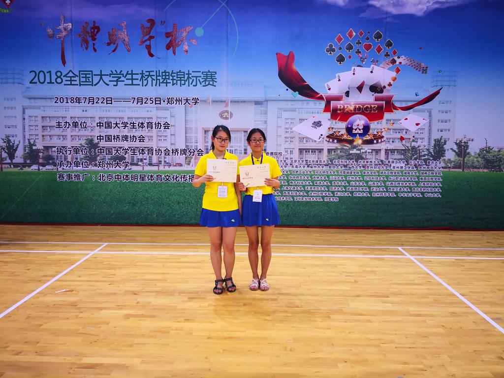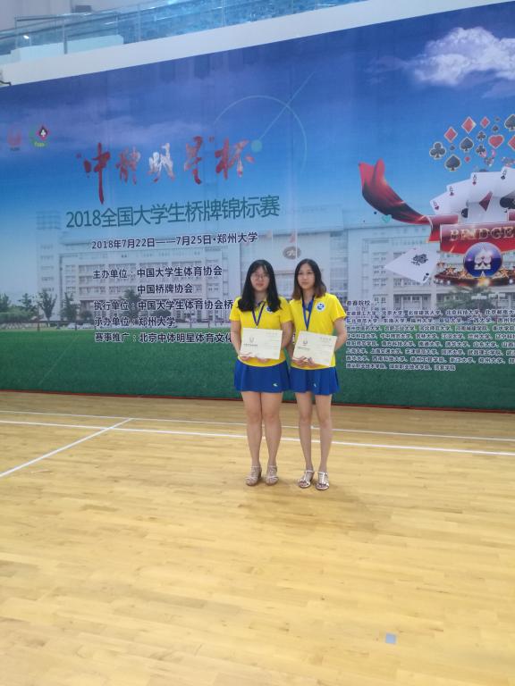 7月21日-25日,由中国大学生体育协会与中国桥牌协会共同主办,中国大学生体育协会桥牌分会协办,郑州大学承办的2018年全国大学生桥牌锦标赛在郑州大学举行,来自全国24个省区市57所高校88支代表队的700余名运动员参加了比赛。我校桥牌队团结一心、奋勇拼搏,勇夺女子甲组团体亚军,并获得女子甲组双人赛第一名和第三名,取得我校在该项目上的历史最好成绩。