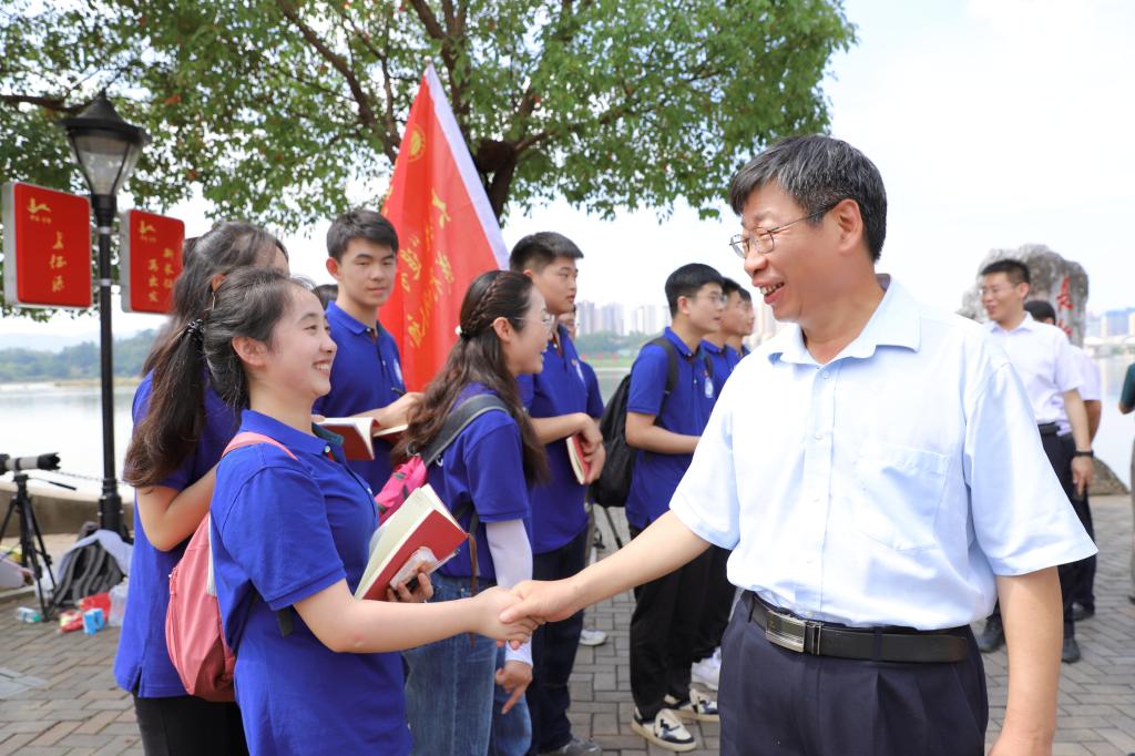 6月25日,我校“追寻习近平总书记重要足迹,践行水利人初心使命”大学生暑期“三下乡”社会实践团在赣州于都长征渡口受到水利部副部长刘伟平一行亲切慰问。刘伟平与实践团成员亲切交流,详细询问了实践团活动开展情况,勉励青年学子发挥水利院校学科专业优势,从长征精神中汲取水利强国的奋进力量,用实际行动践行水利人初心使命,在青春的赛道上跑出水利学子的最好成绩。