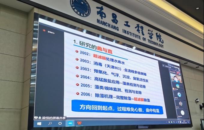 11月23日下午,教育部给排水科学与工程专业教学指导分委员会秘书长、哈尔滨工业大学梁恒教授以腾讯会议方式做客我校第247期“鄱湖学术讲坛”。校长汪胜前主持会议,土木与建筑工程学院师生近200人参加了本次报告会。