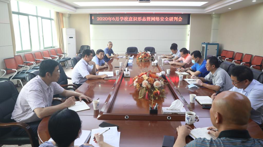 6月4日,学校党委召开2020年6月意识形态暨网络安全研判会。校党委书记徐兰宾,校党委副书记吴泽俊,党委委员、副校长陆伟锋,党委委员、党委统战部部长欧阳子龙,党委委员、党委宣传部部长洪恩强,以及党办、党委教师工作部、党委学工部、党委保卫部、教务处、网络信息中心等部门负责人参加会议。